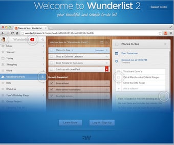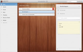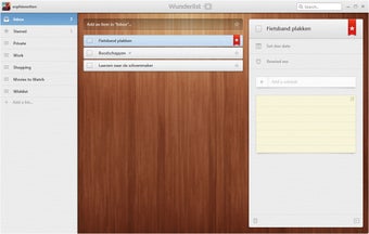 Het eerste dat meteen opvalt aan Wunderlist is de mooie, minimalistische interface – een design dat gelijk doet denken aan een iPhone applicatie. Wunderlist heeft een handige verdeling voor je gemaakt zodat je taken sorteert naar onderwerp: Private, Work, Shopping, Movies to watch, Wishlist, en de mogelijkheid om eigen lijstjes toe te voegen. Wunderlist gebruikt de bekende shortcuts van je toetsenbord waardoor het programma makkelijk te gebruiken is. Daarnaast sleep je eenvoudig je klussen in een andere lijst zodat je verschillende karweitjes combineert.